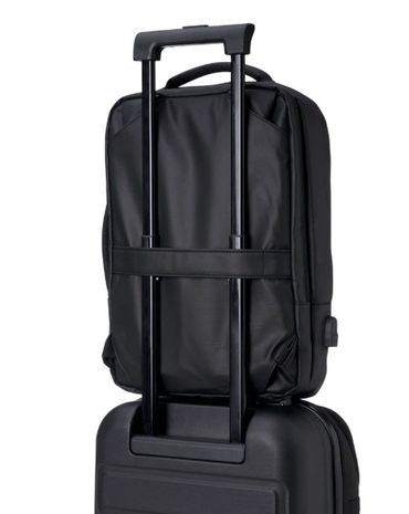 Alça carona e duas alças de mãos, sendo uma delas lateral para o transporte da mochila no modo pasta.